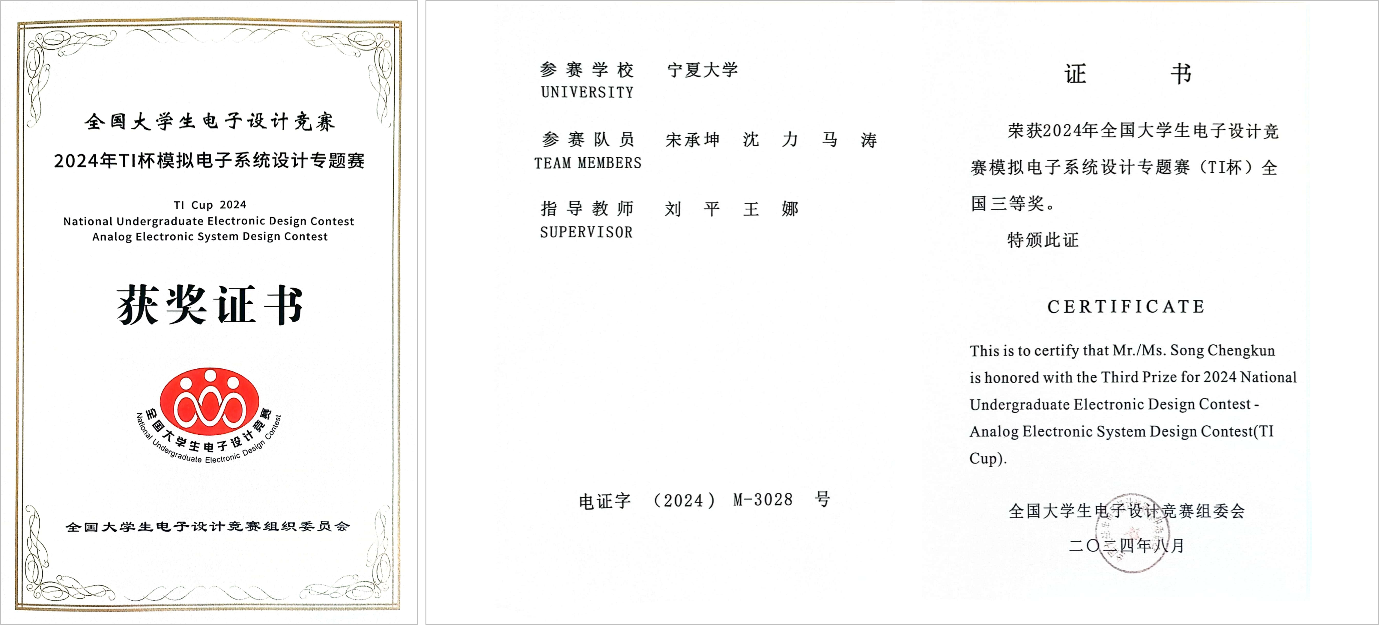 学子经过一路过关斩将取得了优异的成绩。7月,收到邀请受邀参加2024年TI杯模拟电子系统设计专题赛决赛,九游娱乐