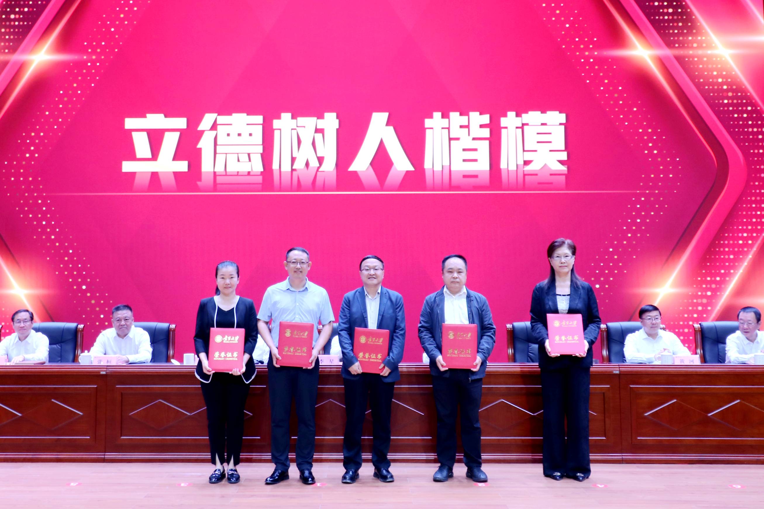 从教满35年教师汤全武教授,“立德树人楷模”获奖教师汪西原教授,全国和全区高校教师教学创新大赛获奖教师、全国和全区青年教师教学基本功大赛获奖教师宋佳乾等三位教师获表彰现场上台领奖,青年博士陈鹏参加九游娱乐