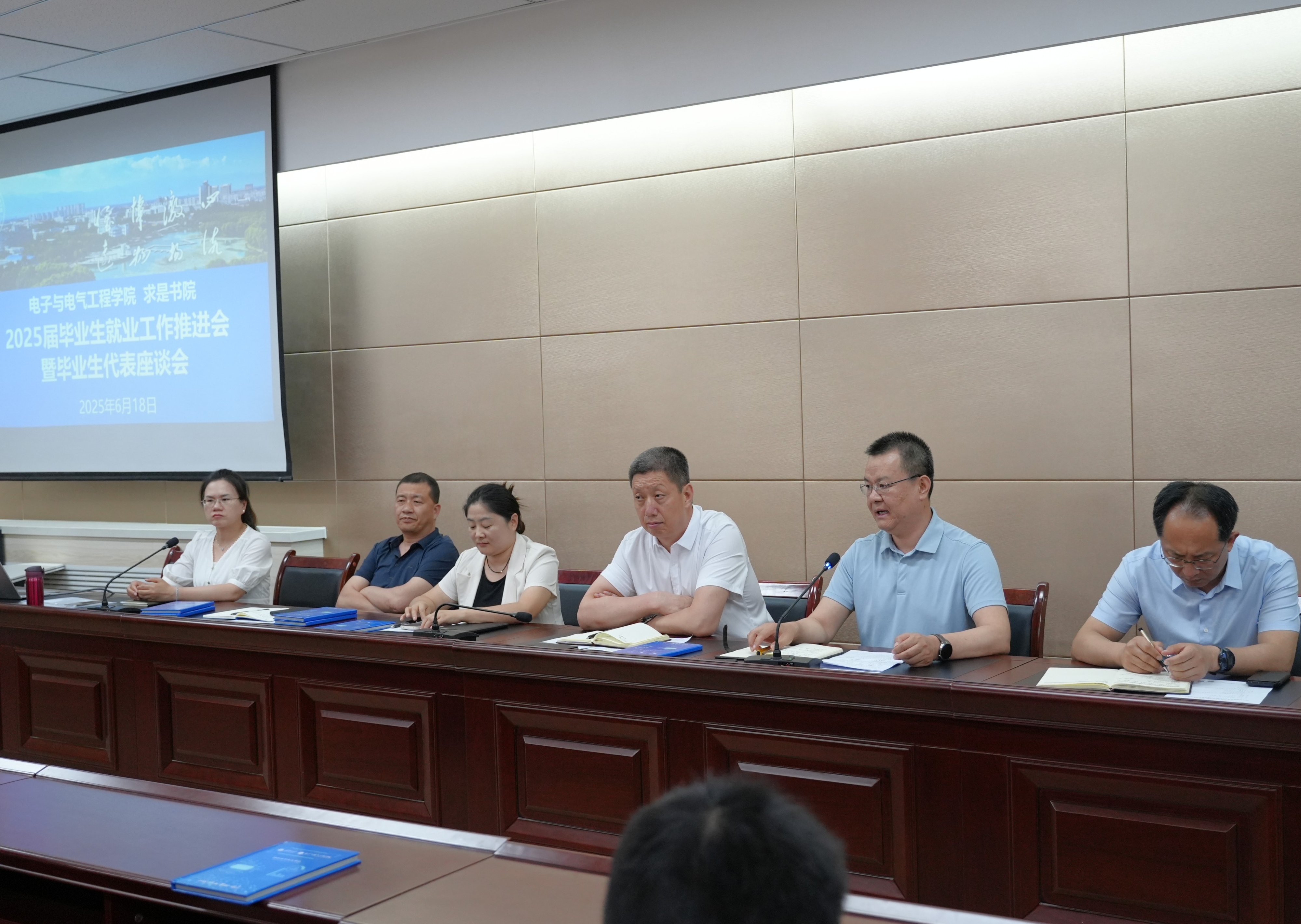 联合求是书院于怀远校区德言楼报告厅举行2025届毕业生就业工作推进会暨毕业生代表座谈会。学院领导班子、求是书院负责人、系负责人、毕业班班主任、辅导员及毕业生代表齐聚一堂,精准研判就业形势,共商未就业学生帮扶良策,深情寄语毕业生扬帆远航。会议由学院党总支书记何彦平主持。