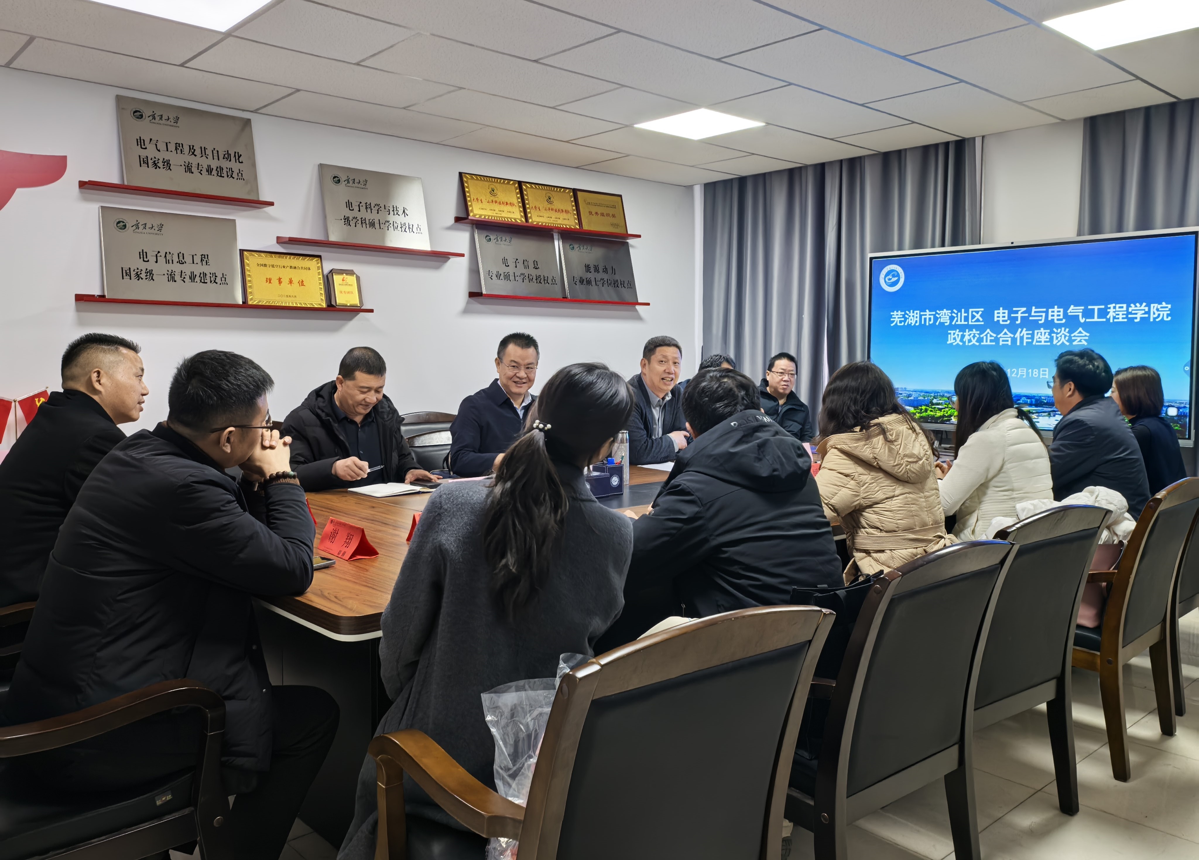 【电院讯 扈洁/文、图】为进一步深化跨区域产学研合作,探索政校企协同育人新机制,12月18日,安徽省芜湖市湾沚区代表团再次到访体育投注进行交流访问。双方围绕人才培养模式创新、实习实践基地优化、特色专业共建、跨区域师资库建设等议题展开深入研讨,共同谋划合作新篇章。座谈会由学院党总支书记何彦平主持。