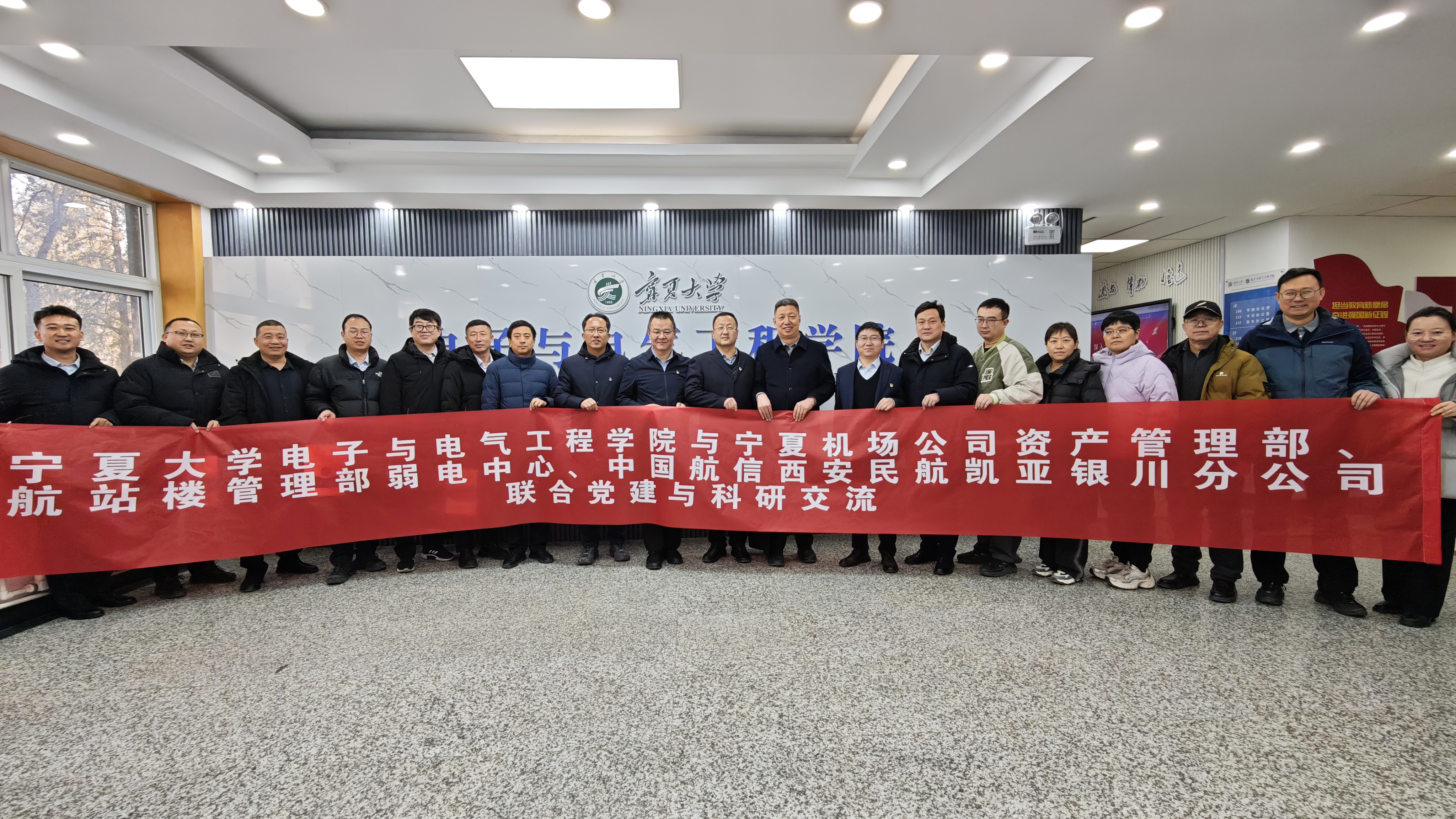 【电院讯 陈鹏/文 李春树、陈鹏、扈洁/图】为深入学习贯彻党的二十届四中全会精神,服务科技自立自强国家战略,推动区域经济社会发展,12月24日,体育投注与宁夏机场公司资产管理部、航站楼管理部弱电中心、中国航信西安民航凯亚银川分公司共同举办“党建联建聚合力 数字赋能促创新”联合党建与科研交流活动。座谈会由学院副院长郭中华主持。
